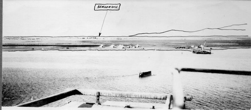 They arrived on 16th. November and anchored in Sherm Rabegh, with the aid of a jetty built by R.N. ratings from H.M.S. Minerva, which was acting as our guardship, on the 17th. they commenced unloading. Stores and machines were towed ashore on two longboats coupled together and planked over. With the aid of about 500 Egyptian troops under the command of Major Joyce they were able to"man-handle" a lot of the equipment. Two tenders with trailers quickly transported the equipment from the jetty to the Aerodrome where a working party of mechanics were busy erecting hangers and machines. The road across the sands became very bad and it was necessary to construct a road between the jetty and the Aerodrome. This road proved most valuable when the winter tides came flooding the land between the jetty and the Aerodrome plateau. All the Arab forces camped at Rabegh were under the command of Sherif Ali, the eldest son of the Grand Sherif. He was greatly interested in the erection of the machines which was going on in the open and he was very keen to see them fly. On the 24th. November two machines were completed and were flown and tested, causing much excitement among the Arab troops who flocked to the Aerodrome to see the machines land. A photographic reconnaissance was also done to Mastura, a well on the Sultani route. This flying created a precedent which was maintained throughout the Flight's sojourn in Arabia. |