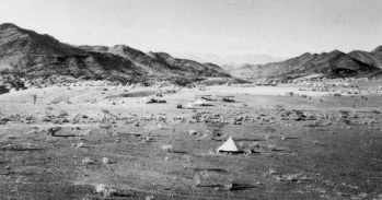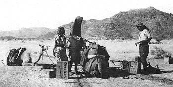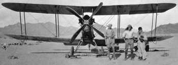 The last named being the Medical Officer who by dint of consistent good work maintained a very excellent standard of health among troops working under the very trying conditions. He also assisted Major McConnochie - attached E.A. - in the running of the civil hospital in Wejh, where between them they carried out successfully many dangerous and skilful operations on the Arabs. A portion of the depot ship was formed into a hospital for white troops where every attention was given them. Convalescent cases were usually evacuated to Suez or Port Sudan. The desert reconnaissances proved invaluable as we were able to ascertain whether the wells were dried up or not and also enabled us to find suitable forward landing grounds. The reconnaissance was usually done by one Crossley tender and sometimes accompanied by a Ford car. The Rolls Royce car of the Armoured Car Section proved too heavy but eventually did good work when the armouring was removed and the cars lightened generally. But they could not compete with the Crossley which when fitted with double wheels on all four would go anywhere. On several trips useful bearings on conspicuous objects were taken, enabling us to compile a fairly accurate map, as the maps with which we were originally supplied proved to be practically useless as they were incorrect both in distances and direction. A plentiful supply of water was always taken as it was a very easy matter to get badly "bushed" among the mountains if one was not careful in noting the direction and landmarks on the outgoing journey. A small pocket compass was usually carried but owing to the magnetic properties of some of these doubtless semi-volcanic hills it did not always shew the true meridian. A sextant would have been invaluable and is recommended to be carried for long desert treks when topographical work is to be done en-route. It would also give one's exact position on the map provided that a definite course had been adhered to. A reliable liquid compass with bearing plate too should be taken. An aero-type compass would do excellently. Communication was kept up between aeroplanes and the car parties by means of ground strips and smoke signals. The ground signals were as usual four strips of white cloth about 15ft x 2ft. These were placed on the ground to represent letters - a code having previously been arranged. A smoke signal was let off to attract attention when an aircraft was observed in the vicinity. The climate was, I think I may say, healthy but perhaps rather trying at times, especially to Europeans. Rain fell heavily once or twice during the winter months and about Christmas time and the New Year we were subjected to severe storms and gales. In June and July the heat was intense especially inland where the cooling breeze from off the sea did not reach. The “harrahous” mountains throughout the day became intolerably hot and such wind as there was blowing down the wadi beds and gorges was exceedingly hot and dry and burning to one's eyes. The nights were delightfully cool and fully compensated for the discomforts of the day. There were very few places where the Bedouin has attempted cultivation. These places are usually to be found in main wadi beds somewhere near a well or water hole. In most cases the Bedouin dam the main wadi and deflect the flood of the winter rains to the place they wish to cultivate. In the majority of cases the Arab prefers to wander from place to place with his flock of goats or sheep, seeking new grazings and waterage. With this object in view he travels very far from place to place each year but generally keeps within his own tribal boundary. There is little wild game worth mentioning gazelle being the most numerous. Herds of these animals inhabit the larger of the wadies, and feed on the brushwood and tufts of long grass which is often collected by the Bedouin for camel fodder. Ostriches are to be found further inland in the Hail districts. They are seldom, if ever, seen on the Red Sea littoral. Ring-doves and sand grouse there are in plenty and they form a valuable addition to the stock-pot. Of the bigger game lions, leopards, and hyenas inhabit the rocks and prey upon the gazelle in the valleys. Reptiles and insects are fairly common. A green variety of the former was often seen varying from 2˝ ft to 4 ft in length. Scorpions and tarantulas swarm in large quantities causing unpleasantness. Mosquitoes were troublesome and more common near the stagnant marshes in the wadies and near the coast. TH |