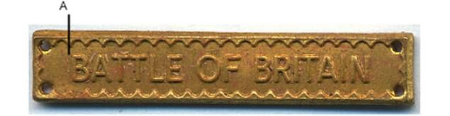Figure 1. A genuine Battle of Britain clasp. Note the patina colouration, the letter style, and the accurate positioning of the corner holes. Compare with Figure 3.