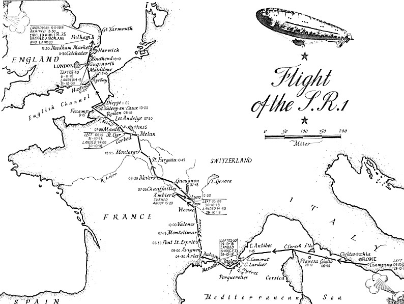 S.R.1 left ground for her flight from Ciampino, Rome to England at 4.25 a.m. on the 28th October, 1918, having on board a crew of 9 and sufficient fuel for 18 hours full power.